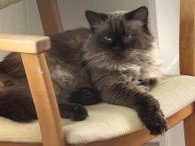 En lite försiktig äldre herre som vi hjälper hitta ett nytt hem då ägaren flyttat till ett äldreboende// Brunis visade sig vara en sjuk kisse, så han fick lugnt och stilla somna in på katthemmet